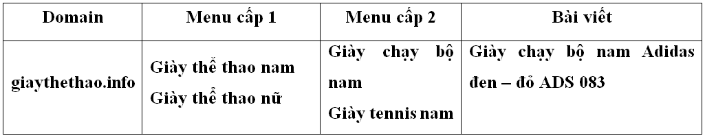 - Nếu trong bài viết có từ khóa về “Giầy thể thao” thì trỏ về trang chủ, từ khoá về “Giầy thể thao nam” thì trỏ về menu cấp 1, từ khóa “Giầy chạy bộ nam” thì trỏ về menu cấp 2.